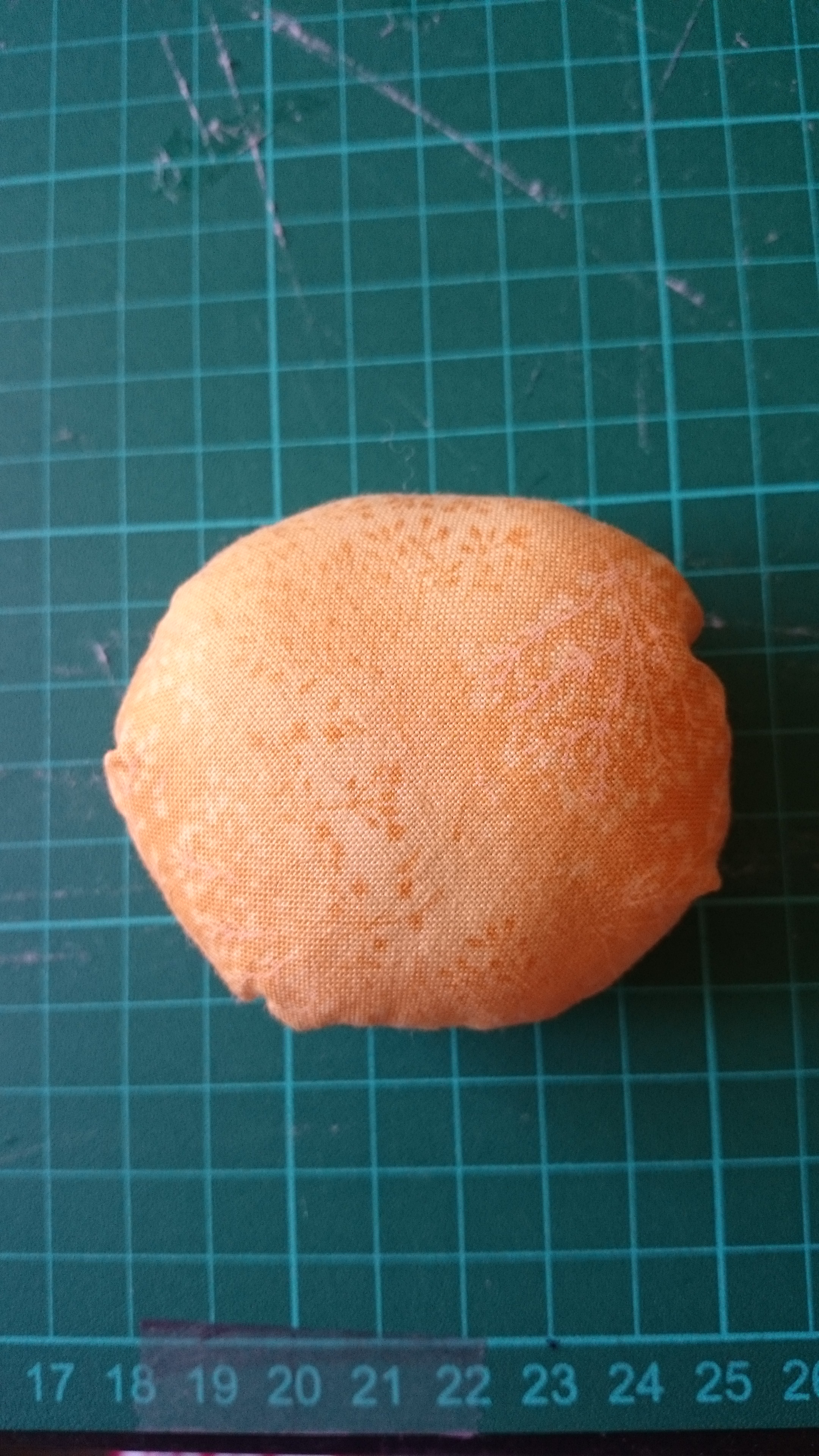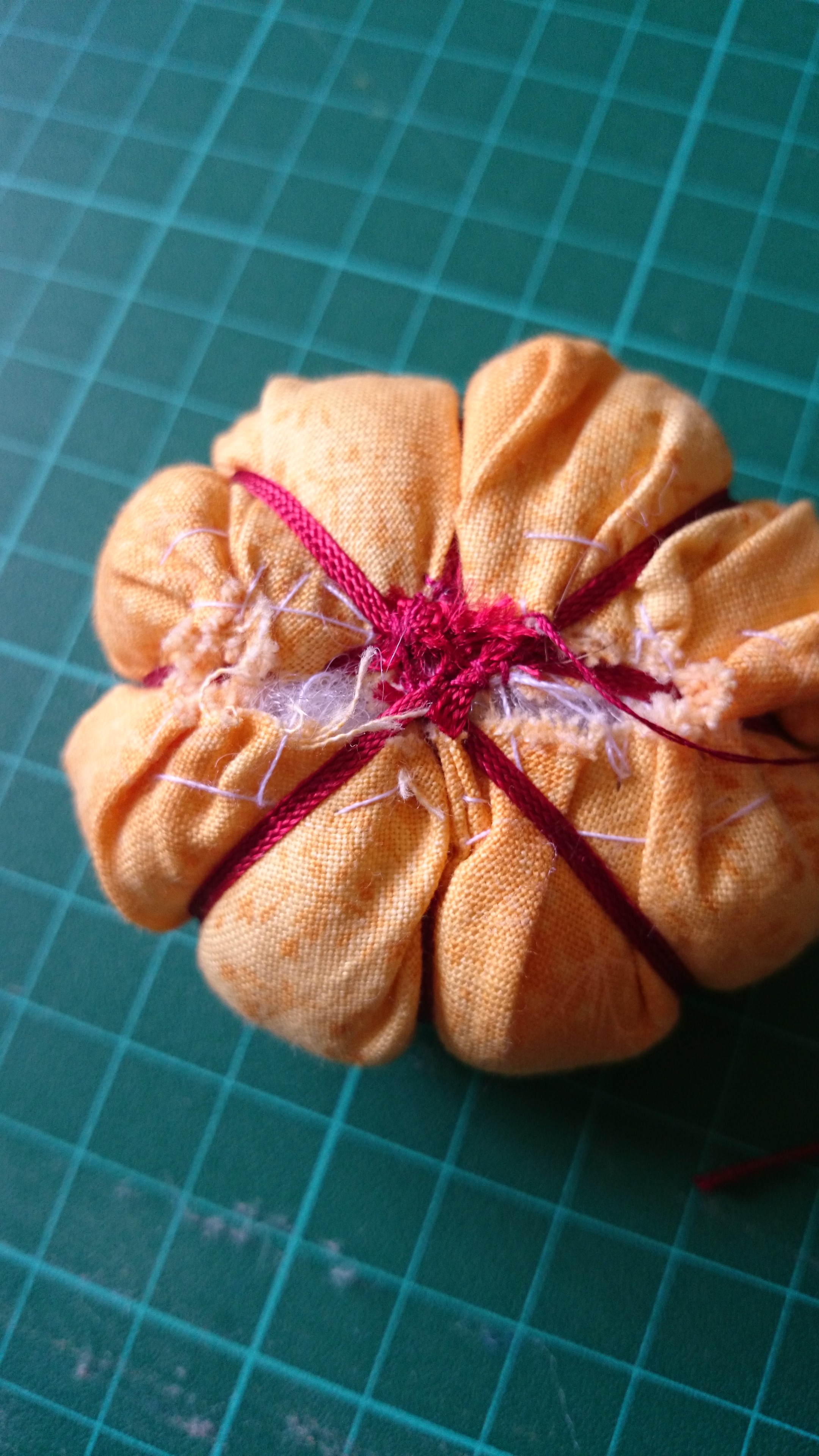 Hay que cerrarlo prácticamente del todo y dar unas puntadas para fijarlo y que no se nos abra. Nos va a quedar una especie de bolita (lo mío tiene forma de calabacita 🙂 )