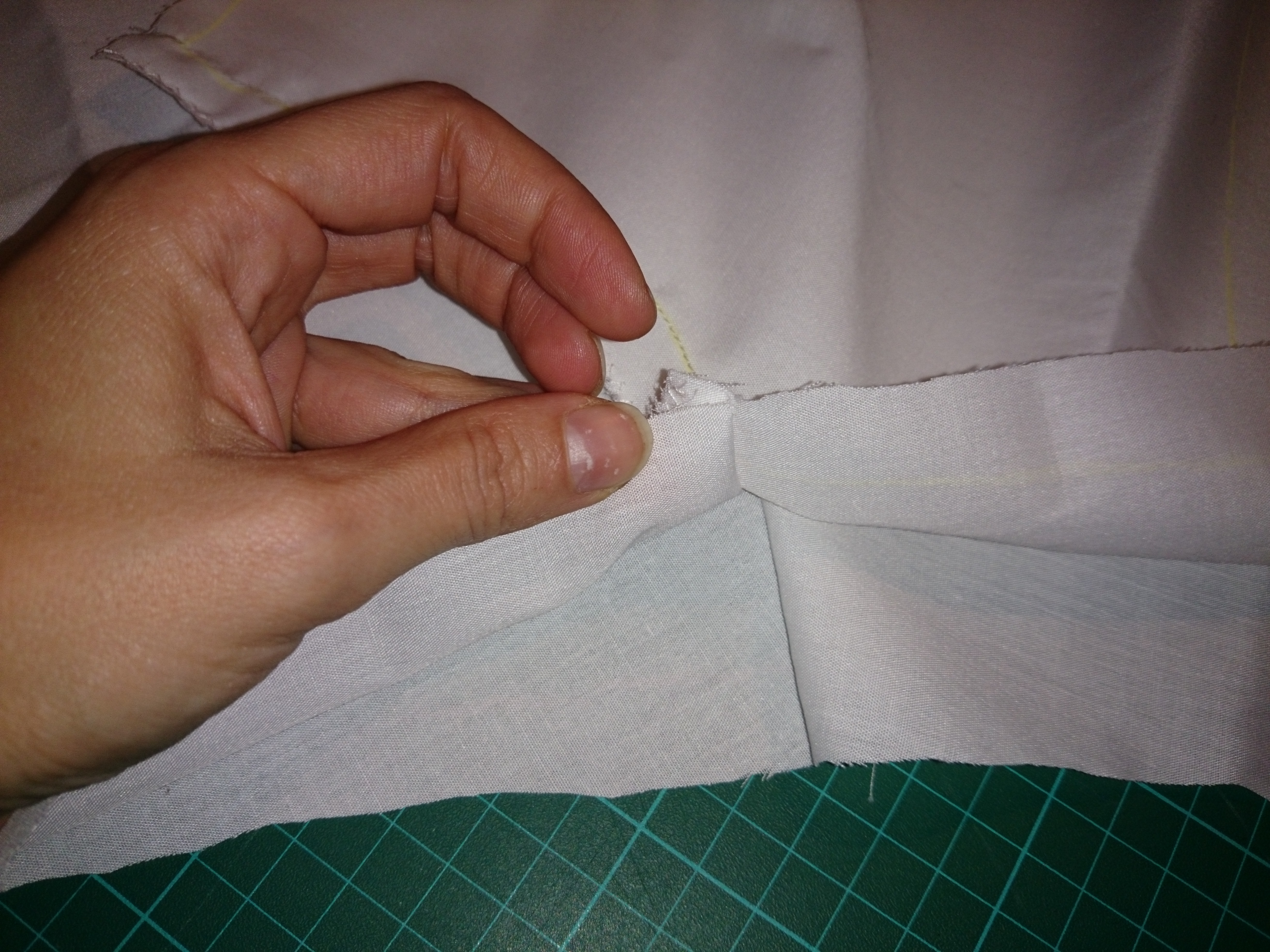 Hay que enfrentar derecho con derecho de la tela y hacer coincidir la costura central, espero que lo veáis bien en la foto.