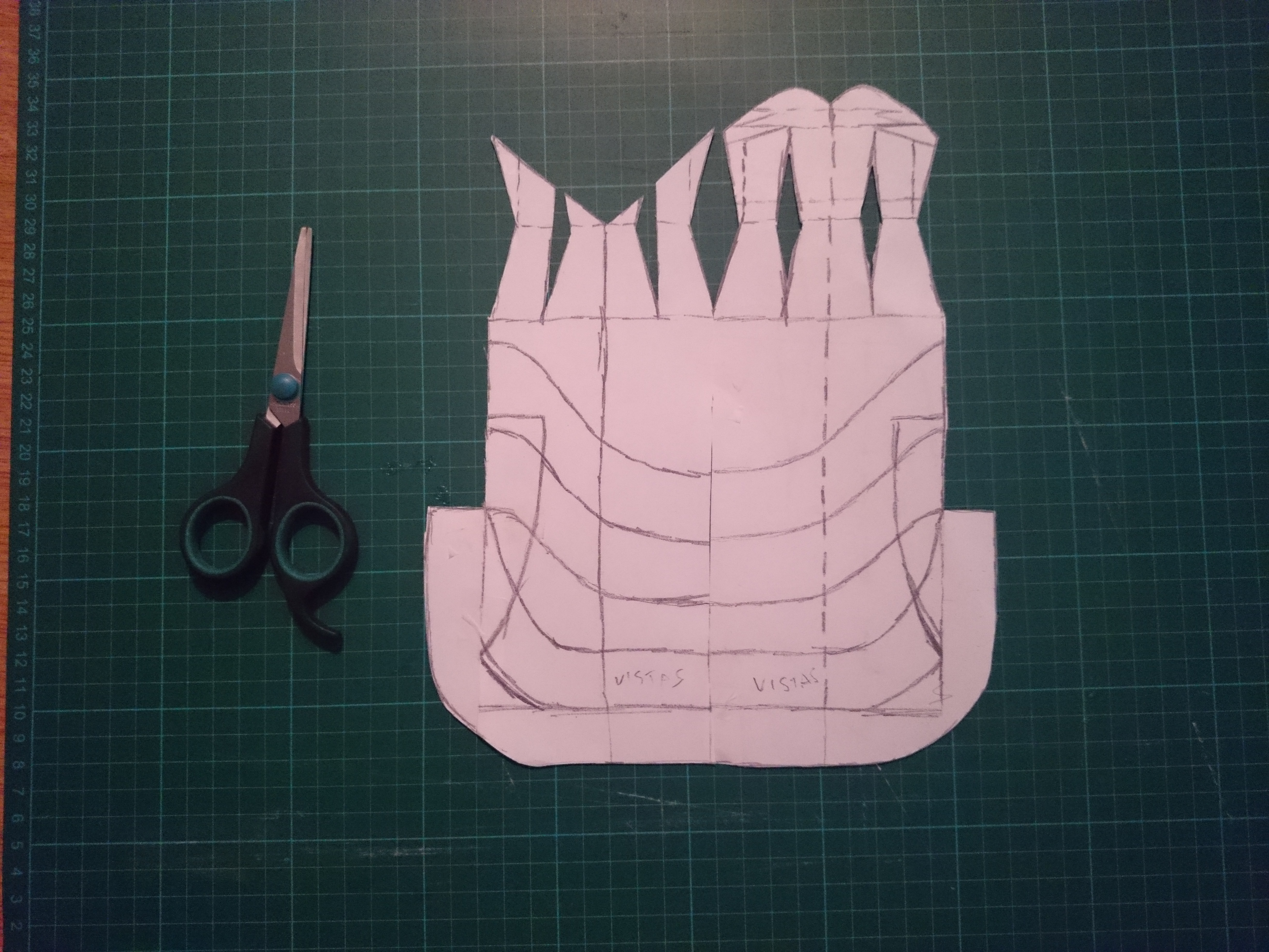 Así que me puse manos a la obra… a medias jejeje. No tenía suficiente tela para hacerlo a tamaño real y además quería experimentar un poco antes de ponerme a gastar tela a lo loco. Por suerte aún no tenía las telas que mi amiga quería (luego os digo por qué por suerte… XD) así que no hice ninguna locura. Decidí que iba a hacer un prototipo en miniatura, así que amplié el patrón en la fotocopiadora hasta este tamaño.